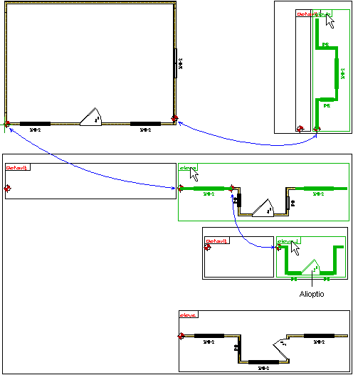Toiminnolla voit vaihtaa aktiivista optiota avoinna olevassa kuva-malliparissa. Ohjelma siirtää valitun option rakennusosat paikoilleen kohdistamalla option nollapisteen pohjakuvassa olevaan nollapisteeseen. Voit valita samanaikaisesti useita optioita, joilla on eri nollapisteet.