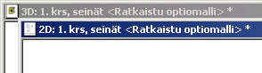 Ohjelma ratkaisee optiot ja päivittää rakennuksen piirustus- ja mallitiedostot. Ratkaistu malli jää aktiiviseksi. Voit tarkistaa rakennuksen tilan työikkunan otsikkoriviltä.