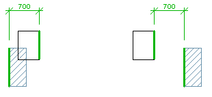 - Siirrä etäisyysehdolla sidottu rakennusosa toiselle puolelle valittuun rakennusosaan nähden peilaamalla ehto puolelta toiselle. Valitse haluamasi etäisyysehto, ja napsauta Vaihda puoli -painiketta. Muutos päivittyy rakennusmalliin, kun napsautat Käytä-painiketta, tai suljet keskusteluikkunan OK-painikkeella.