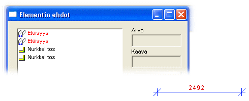 Ratkaisematon ehto havainnollistetaan punaisella värillä sekä pohjakuvassa että Elementin ehdot -keskusteluikkunan luettelossa.