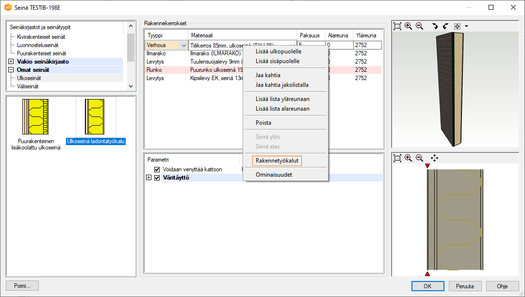 Ominaisuudet. - Valitse seinän kerros keskusteluikkunassa.