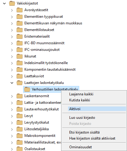Tarvittaessa aktivoi kirjasto Verhoustiilien ladontatyökalu käyttöön.
