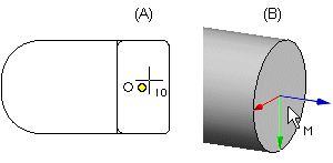 Voit valita putki- tai kanavalinjan aloituspisteeksi komponentin kahvan. Huomaa kohdistimen haku kahvaan pohjakuvassa (A) ja mallissa (B):