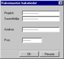 Voit hakea arkistoja rakennuksia hakuehtojen perusteella. Voit hakea esimerkiksi kaikki saman suunnittelijan tai asiakkaan rakennukset, ja muokata projektien tietokortteja.