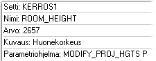 kuvausteksti, esimerkiksi Huonekorkeus. Jos haluat nähdä parametrin oikean nimen, tyhjennä
