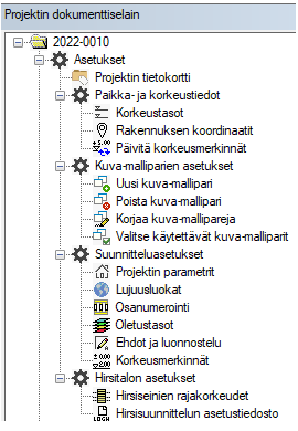 Suunnitteluasetukset - Muokkaa rakennuksen parametreja