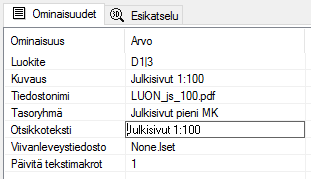 ominaisuudet näkyvät Ominaisuudet-luettelossa.