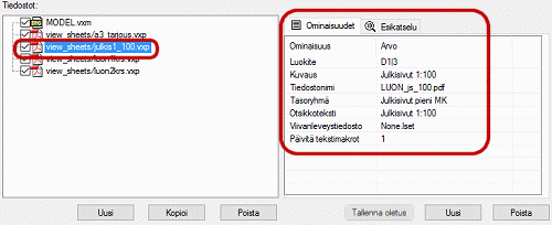 tiedostotyypin, dokumentti saa valmiiksi oletusominaisuudet, joille voit valita arvot.