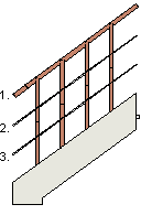 - Kaiteen sijainti - Kun lisäät porrasta, voit määrittää kaiteen sijainnin suhteessa portaan reisilankun sisäpintaan. Voit myös erikseen säätää sekä käsijohteen että kaidetolppien sijaintia parametreilla Käsijohteen sijainti ja Kaidetolpan sijainti.