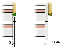 reisilankun sisäpintaan. Alla olevassa esimerkkikuvassa t = reisilankun paksuus, d =