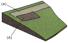 - Voit muokata maastomallia siten, että poistat muun maaston valitun alueen ympäriltä. Maastosta jää jäljelle vain valittu alue. Maan pinnan materiaali määräytyy (B) alkuperäiselle maastolle valitun ominaisuuden mukaan.