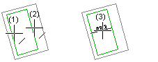 Etäisyys. - Valitse viivat (1) ja (2), ja valitse mittaluvun paikka (3).