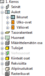 Puussa esitetään vain kyseisen kuva-malliparin (esimerkiksi 1. kerroksen pohjakuva) objektit.