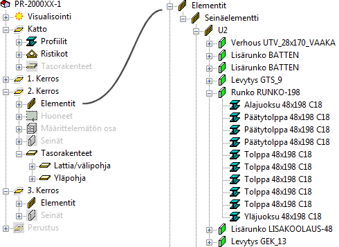 Puussa esitetään kaikki rakennemallissa olevat objektit.