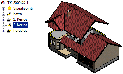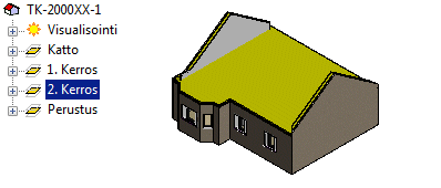 Voit piilottaa ja näyttää seinä-, lattia- ja kattoelementtien tilavarauksia ja osia runkomallissa eri tavoilla.