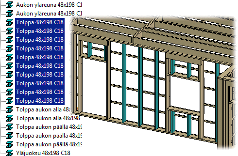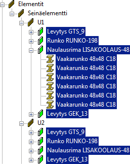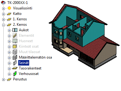 - Valitse haara Seinäelementti ja paina Ctrl+B. Kaikkien seinäelementtien kerrokset ja niissä olevat osat tulevat valituksi.