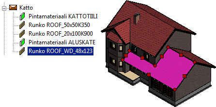 - Avaa objektipuun haara, esimerkiksi Tasorakenteet / Katto.