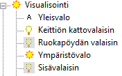 Valon kuvake ilmaisee onko valo päällä vai pois päältä (harmaa).