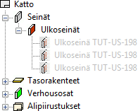 Piilotettuna olevat objektit esitetään harmaalla tekstillä.