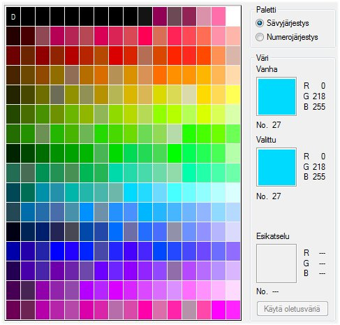 - Paletin värien järjestys