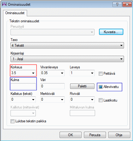 keskusteluikkunassa. Esimerkkinä on tekstin ominaisuudet.
