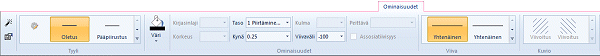 - Jos valitset useamman samantyyppisen elementin, muokattavissa olevat arvot esitetään
