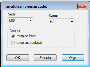 - Muokkaa arvoja Taivutuksen ominaisuudet -keskusteluikkunassa, ja valitse OK.