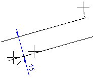 - On huomioitava, että vertailuviiva ei voi olla piirrettävän viivan osa. Vertailuviivan valinnan jälkeen anna viivaimen etäisyys viivasta lukuarvona.