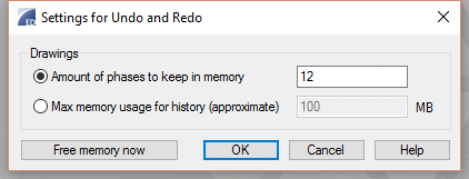 Settings for the Undo and Redo Functions