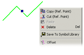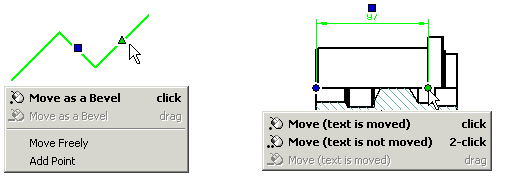 - Open the context-sensitive menu by clicking the right mouse button. The functions depend on the selected element and the active handle. The default function is displayed in bold text in the menu.