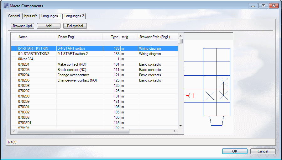 • Change the language of the component library to English in the Language field: Type the number 1.