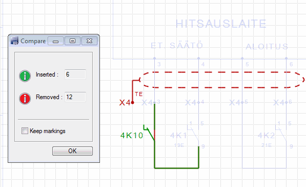 - The Compare dialog box demonstrates additions and deletions done to