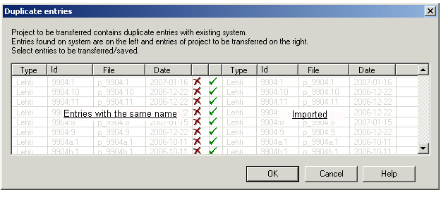 If the project is imported with the new label, imported entries of the project only are displayed in the list. Select the imported entries by clicking the symbol.