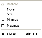 The control menu contains functions for changing the location and size of the window, and for exiting the software.