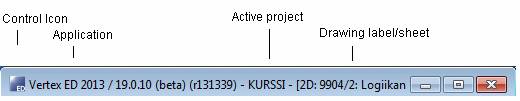 2D: the drawing number/form and the project id. The working window is a drawing window, drawing functions are available.