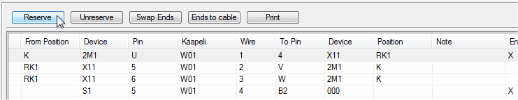 - Select a cable from the list, to which you define the wiring.