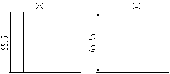 Changing the dimension precision from 0.1 (A) to 0.01 (B) is shown in the number of decimals in the dimension.