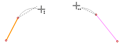 - You can change the starting direction of the line (tangential or perpendicular) by moving the cursor near the starting point of the line. This releases the direction of the cursor.
