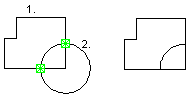 Select the cutting line (1) and the lines to be cut (2). In the example figure, the line formed by clipping has been deleted.