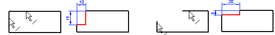 The order in which the lines are clicked affects the positioning of the notch. Before confirming the notch settings, you can easily interchange the notch dimensions using the dialog box functions.
