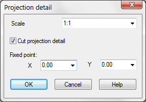 Defines the data of the projection area created of the elements of a designed drawing, such as scale, reference point coordinates and, if necessary, the cutting of a projection detail. Define the projection area data in the dialog box.