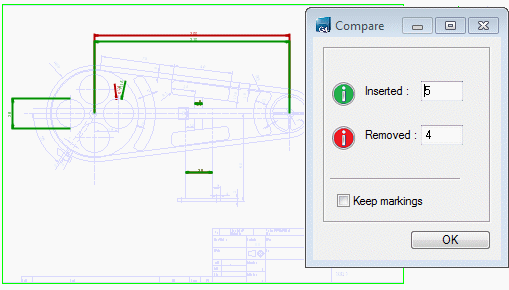 - The Compare dialog box opens and illustrates the additions and deletions in the drawing.