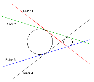 - There are four different ways of setting a ruler tangent to two circles as a common tangent of both arcs.