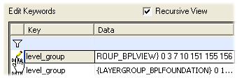 2. Select the first level_group keyword in the keyword list by clicking the symbol in the first column of the row. The selected line will be highlighted in grey.