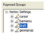 - If you do not know to which keyword group the keyword belongs, you can search for it among all keywords by selecting Vertex Settings as the search object from the top level of the tree view.