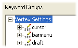 Filter Keywords checkbox. - Select the top level of the tree view, Vertex Settings.
