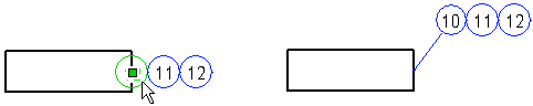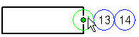 esimerkiksi viivaan, aloituspisteen kahva näkyy, vaikka se on osanumeroympyrän sisäpuolella.