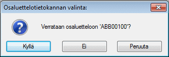 tiedot - Täydennä osaluettelon nimi arkistokortin kenttään Johdinsarja. Esimerkkinä, ABB00100.