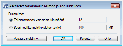 Säädä muistiin tallennettavien piirustusvaiheiden maksimilukumäärän.