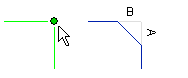 Voit lisätä yhteysviivan nurkkapisteeseen viisteen. Voit lisätä, siirtää ja poistaa viisteen kahvatoiminolla.